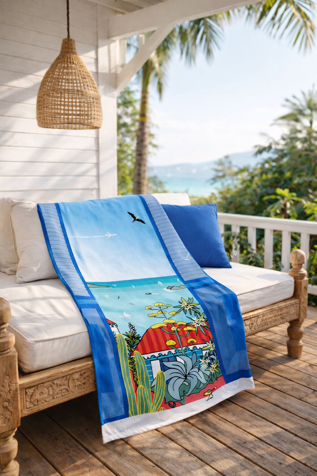 Affiches, cartes, magnets, serviettes de plage et objets de vie deviennent autant de supports pour raconter le paradis créole, la mer, la végétation, les silhouettes, les souvenirs et cette douceur de vivre qui traverse toute mon œuvre.